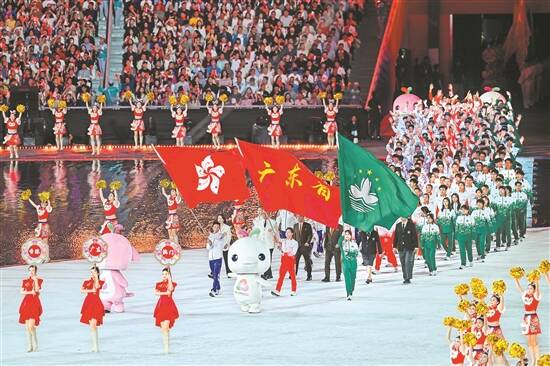 11月9日,广东省体育代表团、香港特别行政区体育代表团和澳门特别行政区体育代表团在入场仪式上共同入场 羊城晚报记者 梁喻 钟振彬 周巍 刘畅 蔡嘉鸿 林桂炎 黄城栋 宋金峪 摄 |