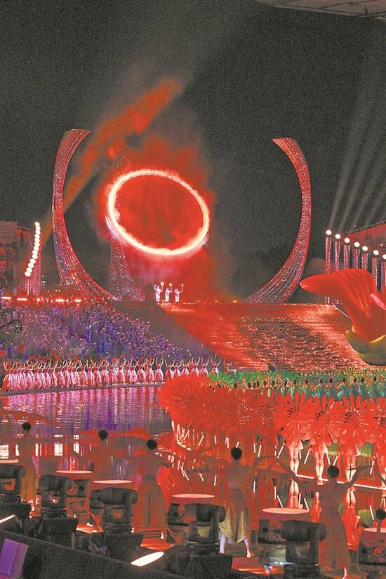火炬传递与点燃圣火环节,堪称十五运会开幕式的压轴大戏,也是这场视觉盛宴的最大悬念。最终,广东运动员苏炳添、香港运动员张家朗、澳门运动员李祎共同点燃了主火炬,象征着粤港澳三地的协同办赛和同心同德。 开幕式上,水舞台的海洋元素如一条蔚蓝主线,有机串联起从火种采集到圣火点燃的全过程。在源火采集上,循着“海上丝绸之路”的足迹,在深海完成“引天之光,燃海之火”的壮举,通过“星火筑梦”火种灯与“鼎盛同心”火种盒,将取自南海清洁能源可燃冰的“源火”醇化为体育圣火。以融合海浪、中华白海豚与火焰意象的“海焰之灵”为火炬传递标志,历经港澳广深四城传递,最终由粤港澳三地运动员代表共同点燃象征“同心共圆,中华梦圆”的超低碳主火炬——“天海之冠”。 这束从南海1522米深处采集的科技之火、绿色环保之火,在粤港澳三地的协同守护下,进一步转化为体育之火,艺术之火。熊熊燃烧的圣火,在此刻升华为赓续中华文明,象征大湾区蓬勃向上的未来之火。它以一种磅礴而温暖的力量,为第十五届全运会彰显科技创新与绿色低碳的理念,作出了精彩和美好的诠释。 谈到主火炬的设计理念,开幕式总导演郎昆介绍,主火炬装置“天海之冠”以“天地人和、同心同向、鼎立中华”为设计理念,圆环造型象征“同心共圆”的时代愿景,“火炬传递由粤港澳三地15名优秀运动员和体育工作者分7棒完成,最终由粤港澳三地优秀运动员共同点燃圣火,彰显“绿色低碳、科技全运”的办赛理念。 十五运会开幕式现场指挥部副指挥长彭高峰介绍,点火是大型赛事的灵魂所在,主创团队明确提出点火仪式呈现从科技走向艺术转化的过程,粤港澳三地共同点燃科技之火、艺术之火。点火装置是动态城市艺术装置,直径11.5米,高度16.5米,通过火环高速喷出的水雾和光电科技的效果,共同实现圣火点燃的壮观景象。在圣火点燃的那一刻,并不产生二氧化碳,践行了绿色产业的理念,让火炬塔的呈现更加环保和超低碳。 羊城晚报记者 柴智 龚卫锋