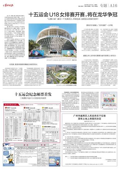 由广东、香港、澳门联合举办的第十五届全国运动会已盛大开幕。11月10日,由深圳市龙华区与南山区联合承办的第十五届全国运动会“广东邮政杯”排球项目(女子18岁以下组)在龙华文体中心和南山文体中