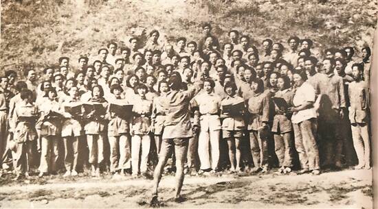 1939年,冼星海在延安指挥鲁迅艺术学院合唱团排练《黄河大合唱》 中国艺术研究院艺术与文献馆藏 |