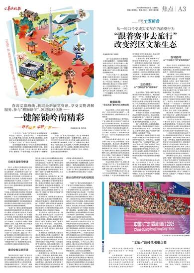 羊城晚报记者 刘星彤 当十五运会的圣火在粤港澳大湾区缓缓熄灭,一组亮眼的数据持续点燃这个冬天的热情——粤港澳三地旅游人次同比增长超过50%、酒店预订量增长3倍,“跟着赛事去旅