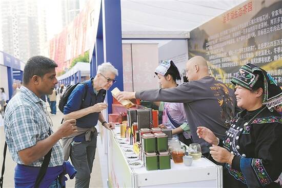 有爱茶的外国朋友也来到现场选购 羊城晚报记者 陈秋明 摄 |
