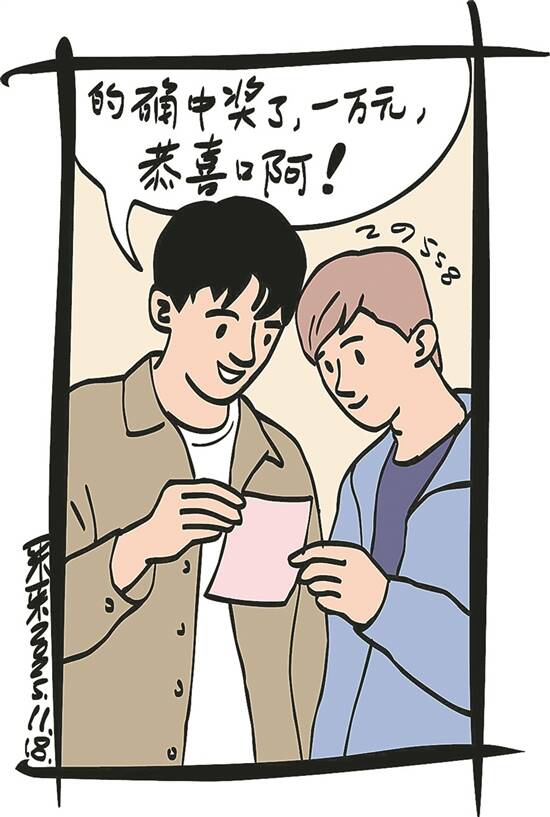 插图:采采 耿鹏赶忙迎上前,确认了一下号码,惊奇地说:“的确中奖了,1万元,恭喜啊!”刚才那个打趣的老彩民也喊道:“更正,我刚才说错了,小耿你这里不是快递驿站,而是幸运驿站!” 这下引得外边不少取快递的人冲进了店里。很多从没买过彩票的人喊道:“小耿,替我机选10注吧!”“我的,打20注!”大家伙儿都想跟着中奖的人蹭一蹭好运气…… 在国庆佳节期间,整个社区都沉浸在节日的喜庆氛围里,一场盛大的社区文艺汇演开始了。令人意想不到的是,最受大家欢迎的一个小品节目,是以彩票店门口取快递的温暖故事为蓝本,那惟妙惟肖的表演逗得观众捧腹大笑。 表演结束后,在众人热烈的掌声和欢呼声中,耿鹏又被邀请上台分享自己的感受。他站在舞台中央,目光缓缓扫过台下一张张熟悉亲切的面孔,心中满是感动。 耿鹏动情地说:“我只是做了一点微不足道的小事,真没想到能得到大家如此多的认可和支持。对我而言,这个彩票店早已不单单是个谋生的地方,它更像是一个充满爱的温暖大家庭。希望在往后的日子里,我们能一直将这份温暖传递下去,让社区的每一个角落都洒满阳光。”话音刚落,台下爆发出雷鸣般的掌声…… (董川北)