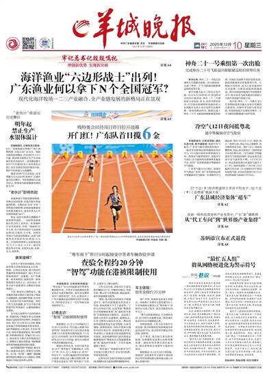 中共广东省委主管、主办 羊城晚报社出版 1957年10月1日创刊 2025年12月10日 乙巳年十月廿一 星期三 24℃ 15℃ 责编/林圳 美编/刘栩