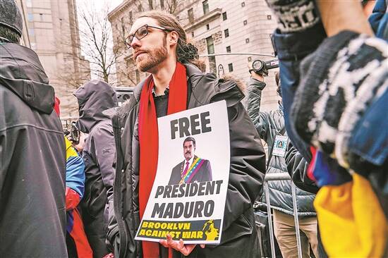 1月5日,抗议者聚集在美国纽约南区联邦地区法院外要求释放马杜罗 新华社发 |