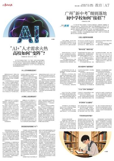 羊城晚报记者 蒋隽 广州“新中考”细则日前落地,不仅各科分值有变化,试卷结构、试题数量、命题导向也有所变化。学校和学生如何“接招”应对?《隽言教育》近日走访广州一些中学获悉,学校已紧锣密鼓启动应对机制。尽管不同学校的策略各有侧重,但在教学变化、课程安排、备考节奏等方面,正形成一些共性趋势与创新做法。 不少中学强调,要把“总分不变、难度稳定”的核心信息传递给家长和学生,避免过度焦虑。同时建议,不必因语数英提分就盲目“报班”,分值“70分”的学科是提升总分性价比的关键,不能忽视。 分值、试题等均有调整 与现行方案相比,“新中考”各科分值有所调整:语文增加20分至140分,数学增加30分至150分,英语增加20分至140分,道德与法治减少20分至70分,历史减少20分至70分,化学减少30分至70分;物理不变仍为100分,体育与健康维持70分。总分仍为810分。调整后,数学在所有考试科目中分值最高,物理在所有副科中分值最高。 此外,各科的试卷结构、试题形式、命题导向也有一定程度微调。 “稳中求变”“教研升级” 清华附中湾区学校(以下简称“清湾”)成立了由校级领导牵头,教学处、年级组、学科组长和骨干教师组成的“新中考改革应对小组”,全面负责研究、规划与实施。 一些省市属知名初中表示,年级层面首先组织教师“吃透改革细则”,各备课组针对英语“角色扮演”、语文附加题等新题型开展专题研讨,形成适配的教学思路。同时调整课堂模式,减少机械刷题,增加综合探究类学习。 中山大学附属中学(以下简称“中大附中”)初二年级级长祁军磊表示,学校将“稳中求变”,聚焦关键变革方向,实施针对性行动方案。 不少学校强调“教研升级”,尤其是开展跨学科协同教研。例如,清湾采取“大文科”(语文、道德与法治、历史)和“大理科”(数学、物理、化学)联合教研,共享思维能力培养策略,共同设计跨学科主题学习项目,以应对试题情境化、综合化的趋势。教学设计上将强化“跨学科学习”,探索不同学科融合的项目式学习。 高分值学科“提质增效” 对分值较高的语、数、英、物, 各校普遍采取“不简单加量,追求提质增效”的策略。 课程时间上,不少学校表示,将在国家课程总课时框架内进行“结构性微调”。例如,清湾适当增加这些学科的连堂课或专题课时间,用于开展项目学习、深度阅读、综合训练等需要大块时间的高阶学习活动。中大附中则提倡学生利用自习课时间增加对这些科目的自主预习、复习和练习。 一位中学校长表示,“课程总时长不会因为分值变化增加”,但会增加“基础小练时间”。 不少学校表示,教学重点也会适当转向。比如,语文强化阅读深度和写作的生活关联性,注重真实情境下的语言运用;数学侧重客观题准确率(因单题分值提高),加强解题思维梳理,减少机械计算;英语增加听说模拟和语篇逻辑训练,适应“角色扮演”等新题型;物理重点加强实验探究、实际应用能力及跨学科实践活动的开展。 难度控制方面,不少学校强调,要“紧扣课标”,不盲目拔高难度,而是针对知识的重点难点进行教学优化。 备考节奏方面,不少学校采用“三年一体,前紧后稳” 的思路。初一、初二侧重核心知识落实与关键能力(如阅读、计算、实验、表达)的扎实培养;初三基于扎实基础,进行知识整合、专题突破和适应性训练。不提前赶进度,初二稳扎基础,初三分阶段复习。备考时侧重构建知识框架、总结思维模型、进行典型情境下的专项能力训练,避免低水平重复。 “70分”学科“效率提升” 针对3门“70分”学科。不少学校采用“分值降低,标准不降、效率提升”原则。 中大附中以课本核心知识为纲,构建知识框架,避免盲目刷题;聚焦重点、热点。日常学习、练习去“机械化”,减少单纯记忆,注重真实情境应用、探究性、综合性学习,强化核心素养。 多所学校表示,课程时间不会明显压缩,因为课标和教材内容基本保持不变。但教学重点发生转变,不再追求知识点全覆盖,而是抓核心素养。例如,化学弱化复杂计算,多结合科技、生活情境做应用教学;道德与法治、历史减少死记硬背,多开展史料分析、热点辨析等活动。 学习转向“主动建构” 学校普遍认为,新中考倒逼学生转变学习方式,从“被动听讲+机械刷题”转向“主动思考+探究实践”。 课堂参与度成为关键。中大附中强调“靶向预习”,让学生带着问题进课堂,紧跟老师思路,当堂知识当堂清,主动与老师互动,及时扫清障碍。 强化自主学习策略。中大附中引导学生针对语、数、英、物建立错题集,按“错题-解析-反思”记录,时常复盘。同时,学生需要学会时间分配:给高分值学科分配更多深度学习时间;对“70分”学科,利用课堂主阵地实现当堂消化,利用碎片时间巩固核心概念和框架。 不同学科如何平衡? 不同学科之间如何平衡? 清湾教学副主任董明洁建议,学生要“战略上重视,战术上科学”。中考看总分,任何一科的严重短板都会造成巨大损失。“70分”学科是提升总分性价比的关键,通过高效学习容易获得稳定高分。同时,要学会分配、提高效率。给高分值学科分配更多的深度学习时间,对“70分”学科,利用课堂主阵地实现当堂消化,利用碎片时间巩固核心概念和框架。加强体育锻炼,保障精力充沛,这是应对更高强度智力挑战的基础。要保持