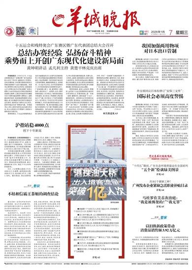中共广东省委主管、主办 羊城晚报社出版 1957年10月1日创刊 2026年1月7日 乙巳年十一月十九 星期三 责编/林圳 美编/肖莎 校对/姚毅 报料热线