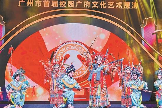 1月10日,作为第十届“羊城学校美育节”核心亮点活动,“粤韵新承・艺绽芳华”广州市首届校园广府文化艺术展演在广州粤剧院红线女大剧院圆满落幕。本次活动是首次以广府文化为主题举办的大型校园艺术盛会,不仅为美育节注入鲜明地域基因,更让中华优秀传统文化在青少年心中扎根结果,让岭南文脉在新时代焕发蓬勃生机。 展演现场,传统与现代碰撞出别样火花。粤语讲古、经典粤剧等非遗项目原汁原味展现岭南韵味,说唱、现代舞台技术等新潮元素为传统文化注入青春活力。《月光光》《落雨大》等经典童谣经全新编排焕发新意,传统粤剧选段与声光电技术完美融合,让观众直观感受传统文化与时俱进的生命力。 粤剧名家的倾情助力,让这场校园展演更添艺术分量。国家一级演员、粤剧表演艺术家郭凤女与广州市南沙区岗城小学学生同台演绎《梁红玉》,以师生同台的形式传承粤剧精髓;广东省文学艺术界联合会党组成员、专职副主席,广东省戏剧家协会主席曾小敏则与8位学生共同唱响《荔枝颂》,节目特别融入《她是红线女》视频片段,向粤剧大师致敬,红腔传世的艺术魅力与薪火相传的文化使命令人动容。 演出结束后,曾小敏表示:“要打造广府文化的文化IP,首先就要深挖本土历史人物、历史故事和风俗等,将这些元素整理成青少年容易理解和传播的内容,通过各种艺术手段和形式去呈现。相信这样可以讲好广府文化故事,也可以让更多人去感受到广府文化的魅力和独特性。” 本次活动设置的粤影展陈由羊城晚报协办。在展陈中,10幅涵盖小学至中学组的绘画作品引人注目,《木棉绽彩·童绘广府蓝图》《粤韵悠扬组图》等佳作,以笔墨捕捉木棉、粤剧等广府符号,展现新生代的艺术创造力。 同时,粤艺展陈彰显非遗活力,30件作品囊括剪纸、广彩、榄雕、灰塑等20余项岭南非遗技艺——黄埔区学生以剪纸复刻《满洲窗里的岭南》,番禺区学生用榄雕呈现《揽雕百财》,天河区学生作品将广绣与拼布创新融合。这些作品既保留了灰塑、通草画、粤剧头饰等传统技艺的本真,又大胆注入现代设计理念,让千年粤艺在校园绽放新彩。 广州市教育局相关负责人表示,本次展演是广府文化校园传承的一次成功实践,未来将持续推动中华优秀传统文化走进校园、融入课堂、扎根生活,让更多青少年走近广府文化、爱上广府文化、传承广府文化,在文化浸润中提升艺术素养,在薪火相传中培育时代新人。 羊城晚报记者 何宁 秦小杰