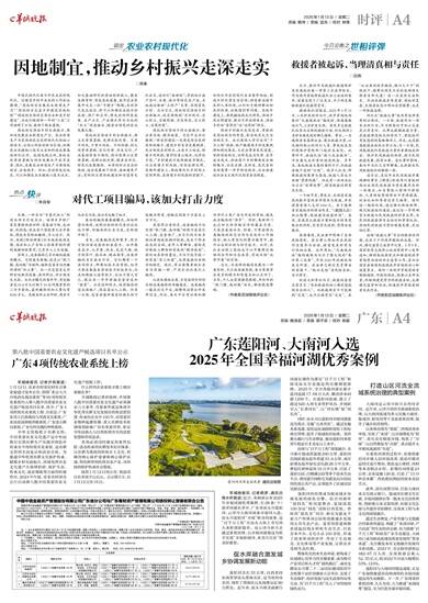 羊城晚报讯 记者胡彦、通讯员粤水轩报道:近日,水利部公布2025年幸福河湖优秀案例,在28条(个)获评河湖名单中,广东省汕头市莲阳河、云浮市大南河两条幸福河入选。汕头市莲阳河“幸福”转身