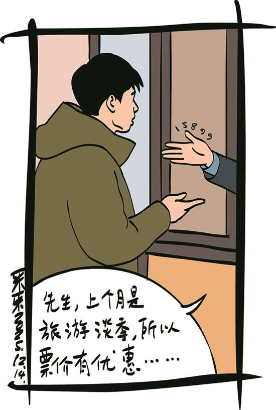 插图:采采 阿明凡事都爱较真。一次,他去景区旅游,见到门票居然要40元钱,他当即皱起眉头,说:“为什么上个星期我朋友来,他们只要30元呢?” “先生,上个月是旅游淡季,所以票价有优惠;现在进入旺季,票价恢复正常,才多了这10元钱。”售票员耐心解释道。 阿明不解:“就相差几天,景色也没有不同。凭什么要多收,这不公平。就得跟买彩票一样,无论买什么样的彩票,都是2元钱一注。” 他站在售票窗口,与景区的工作人员辩论许久。售票员没办法,只能收取了阿明和淡季一样的价钱。 有了这次经验,以后遇到类似的事情,阿明都要争论一番。 和妻子去游泳馆游泳,看到价格表上标明,女士的票价比男士便宜1元。阿明又不乐意了:“为什么男士票价要比女士贵呢?不行,我要投诉。” 游泳馆连忙解释,这只是针对女性客户的引流优惠,并非区别对待。可阿明不依不饶,认为对方没有遵循公平原则。最后,老板只好息事宁人,少收了阿明1元钱。 (黄超鹏)
