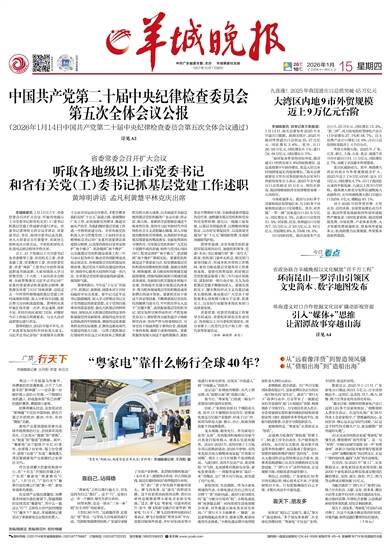中共广东省委主管、主办 羊城晚报社出版 1957年10月1日创刊 26℃ 10℃ 2026年1月15日 乙巳年十一月廿七 星期四 责编