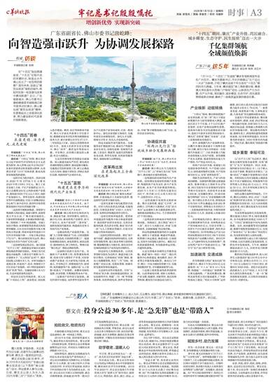 羊城晚报记者 张闻 在“十四五”规划圆满收官、“十五五”征程开启的关键时点,制造业大市佛山交出了一份怎样的答卷?面向未来,这座以“敢饮头啖汤”闻名的城市,将如何在新一轮发展与改革中
