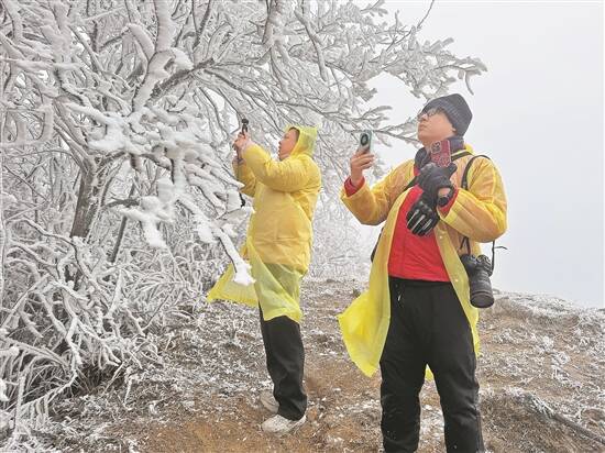 21日,清远连南板洞省级自然保护区出现冰挂雾凇,不少游客前来观赏 通讯员供图 |