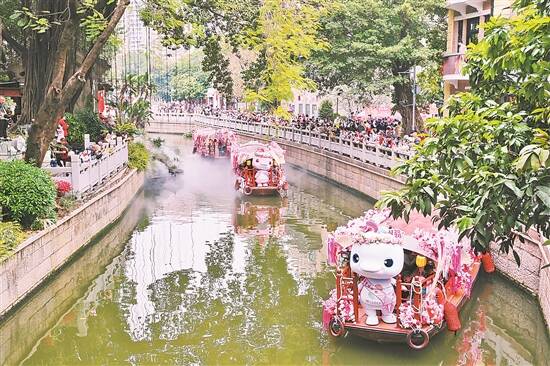 文/羊城晚报记者 马思泳 通讯员 荔宣 图/羊城晚报记者 陈秋明 2月12日,第十六届“荔枝湾·新西关”民俗文化活动之2026年广州水上花市,在西关永庆坊旅游区开幕。本届花市以“花渡千年 马跃新春”为主题,为“广州过年·花城看花”增添一抹浓郁的水乡年味。 开幕式当天,身着汉服、头戴簪花的“花仙子”乘着花船,身背竹篓、肩挑花担的“卖花郎”游走在人群之间,叫卖声不绝于耳。装饰精美的游船从永庆坊码头出发,巡游至文塔码头。仔细看,船上还有市民熟悉的“大湾鸡”——十五运会和残特奥会吉祥物“喜洋洋”“乐融融”。它们化身“花仙子”,戴着花环和绶带,热情地向游客推荐水乡靓花。 本届水上花市重塑水陆廊桥花市观赏空间,以荔枝湾涌全域为主脉,联动荔湾湖公园、荔枝湾涌、粤剧艺术博物馆、永庆坊等重要节点,构建“水上花市+艺术花岸”的联动格局。 开幕仪式的会场旁开设了非遗体验摊位,广州西关礼饼制作技艺市级非遗传承人谢颖春现场教学,来自法国的游客Jules与友人一同现场体验炸蛋散、包油角。这是他们第一次体验广东“开油镬”。“我的朋友们都喜欢烹饪,我也很喜欢广东的甜品和点心。”Jules和记者交谈时还特意说了粤语:“我的朋友们第一次来中国,他们来中国玩得很开心。广州好靓,广东好靓,广东菜好吃!” 此次水上花市通过资源整合和平台赋能,串联荔枝湾沿线的博物馆、咖啡馆、非遗店、潮牌商铺等,新增集章活动,诚邀市民游客开启“寻花启‘马’”之旅,在游逛中探索西关韵味。活动覆盖花畔美集市集(荔湾湖)、天工锦物市集(粤剧艺术博物馆)、得闲坊、星巴克永庆坊非遗店、宫舍、荔湾博物馆、梨缘戏韵体验文化中心、星巴克荔枝湾店等花市核心区域,与西关特色地标、花间艺术美陈相融合,打造覆盖全时段的水上花市打卡城市漫游路线。 其中,作为水上花市另一项活动,花市市集于2月11日至15日举行。市集携手品牌和个体主理人打造三片主题市集——荔湾湖公园花畔美集、粤剧艺术博物馆天工锦物集和永庆坊花田喜市。琳琅满目的市集商品,沉浸体验的潮玩互动,妙趣横生的街头演艺,让市民在参与中感受新春年味。 今年,广州水上花市联动岭南花卉市场,通过民俗活动和市场产销相结合,实现从花卉批发市场到滨水花岸的无缝衔接,市民游客在现场可买到和专业市场同品、同质的各式年花。