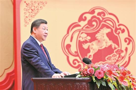 新华社电 中共中央、国务院14日上午在人民大会堂举行2026年春节团拜会。中共中央总书记、国家主席、中央军委主席习近平发表讲话,代表党中央和国务院,向全国各族人民,向香港特别行政区同胞、澳门特别行政区同胞、台湾同胞和海外侨胞拜年。 习近平强调,即将过去的乙巳蛇年,是很不平凡的一年。面对复杂多变的国际国内形势,我们迎难而上、砥砺前行,推动党和国家事业取得新进展新成效,全年经济社会发展主要目标任务顺利完成,“十四五”圆满收官,我国经济实力、科技实力、国防实力、综合国力跃上新台阶,中国式现代化迈出新的坚实步伐。 李强主持团拜会,赵乐际、王沪宁、蔡奇、丁薛祥、李希、韩正等出席。 人民大会堂宴会厅灯光璀璨、喜气洋洋,各界人士2000多人欢聚一堂、共迎佳节,现场洋溢着欢乐祥和的节日气氛。 上午10时许,在欢快的乐曲声中,习近平等党和国家领导人步入大厅,向大家亲切致意,同大家互致问候、祝福新春,全场响起热烈掌声。 习近平在讲话中指出,一年来,我们实施更加积极有为的宏观政策,进一步全面深化改革,扎实推进现代化产业体系建设,我国经济顶压前行、向新向优发展,展现出强大韧性和活力。扎实推进社会主义民主法治建设、文化建设、生态文明建设、国防和军队建设,各项事业互促共进。着力保障和改善民生,社会大局保持稳定。我们胜利召开党的二十届四中全会,擘画了“十五五”发展蓝图。隆重纪念中国人民抗日战争暨世界反法西斯战争胜利80周年,设立台湾光复纪念日,庆祝西藏自治区成立60周年、新疆维吾尔自治区成立70周年,在粤港澳三地联合举办第十五届全国运动会,进一步凝聚起推进中国式现代化的磅礴力量。我们提出全球治理倡议,成功举办上合组织天津峰会、全球妇女峰会,积极推动构建人类命运共同体,为变乱交织的世界注入更多确定性和正能量。我们坚定不移推进全面从严治党,扎实开展深入贯彻中央八项规定精神学习教育,党风廉政建设和反腐败斗争取得显著成效,政治生态和社会风气持续向好。 习近平强调,一年来的收获沉甸甸,这是全党全国各族人民共同努力的结果。成就令人鼓舞,奋斗增添信心。只要保持战略定力,一步一个脚印坚定朝前走,一个阶段一个阶段扎实推进,党和国家事业就一定会不断积小胜为大胜,我们的目标就一定能实现。 习近平指出,2026年是中国共产党成立105周年,是“十五五”开局之年。我们要坚持以新时代中国特色社会主义思想为指导,深入贯彻党的二十大和二十届历次全会精神,认真落实四中全会部署,坚持稳中求进工作总基调,完整准确全面贯彻新发展理念,加快构建新发展格局,着力推动高质量发展,保持社会和谐稳定,持之以恒推进全面从严治党,努力实现“十五五”良好开局。 习近平强调,我们党为人民而生、因人民而兴,一切工作都是为了人民的幸福。我们要始终坚持人民至上,树立和践行正确政绩观,创造经得起实践、人民、历史检验的实绩。 习近平指出,在中华文化里,马是刚健雄壮、自强不息的象征,昭示着行稳致远、兴旺发达的前景。丙午马年,希望全国各族人民更加紧密地团结在党中央周围,坚定必胜信心,保持昂扬斗志,在中国式现代化新征程上策马扬鞭、勇往直前,共同开创更加美好的未来。 文艺工作者现场表演了精彩的节目。 中共中央、全国人大常委会、国务院、最高人民法院、最高人民检察院、全国政协、中央军委领导同志和老同志出席团拜会。 参加团拜会的还有中央党政军群各部门及北京市负责同志,各民主党派中央、全国工商联负责人和无党派人士代表,离退休老同志代表,著名专家学者及首都各界人士代表。