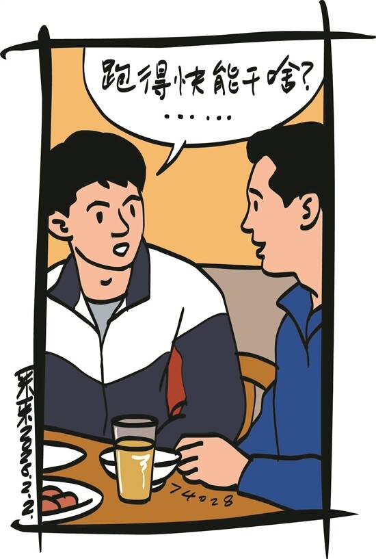 插图:采采 一见面,教练看到大林落魄的样子,十分心疼,对他说:“你还年轻,换换赛道是好事,但最好能选择和你的才能有关的工作,不要跨界太大,做点跟老本行相关的,说不定能有大成就。” 大林答道:“跑得快能干啥?我去送快递,人家还嫌我态度差。可我从小就练体育,其他的可不比别人优秀,干不了别的活。” 教练笑了,说:“你就是这个牛脾气。这样吧,我介绍一个能让你发挥特长的工作,这工作可好啦,还能在赛场上比短跑三天王更快越过终点线。”说完,教练又和大林一起到附近的彩票站试了试手气。 大林以为教练开玩笑,没想到几天后教练真的通知他到运动场去上班。 一去到熟悉的场馆,教练正和一个记者模样的工作人员在聊天,忙招呼他过去。教练指着大林向那人介绍道,“这就是我要向你推荐的人才,以前省队的精英,短跑高手,体格健壮,扛几十公斤的货跑都没有问题,和短跑三天王较量过无数次。” 记者点点头,说:“就你啦。等下你帮忙扛着机器,在赛道中段的旁边跟拍赛场的实况,以你过往的记录,我相信,肯定能提前跑到终点线拍到冠军冲线的一幕。”(黄超鹏)