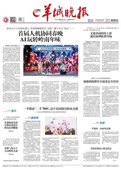 中共广东省委主管、主办 羊城晚报社出版 1957年10月1日创刊 2026年2月20日 丙午年正月初四 星期五 责编/冷爽 美编/肖莎 校对/黄文波