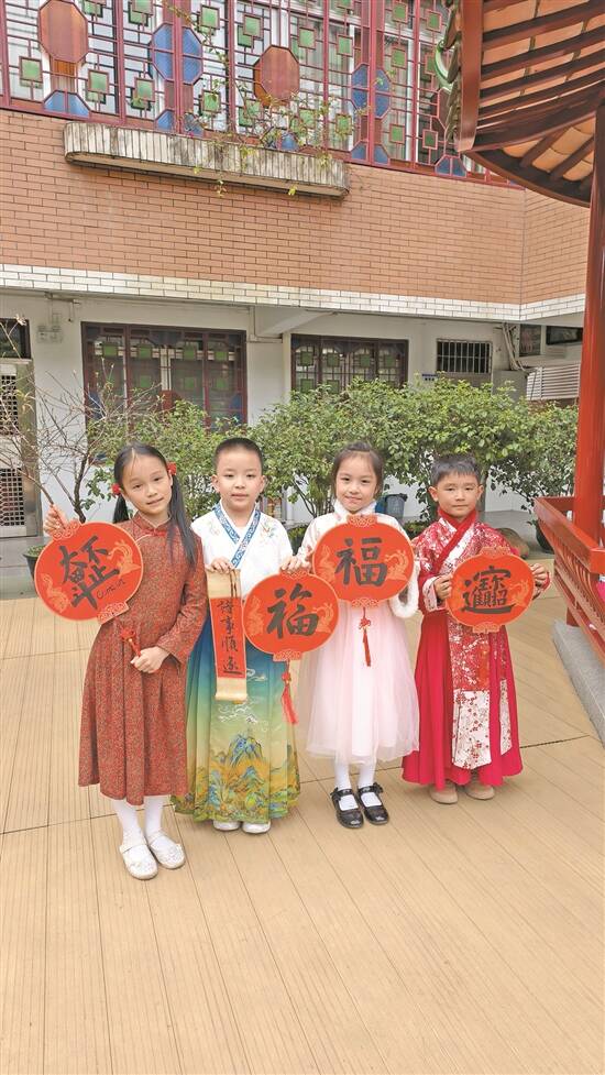 文/图 羊城晚报记者 何宁 秦小杰 辞旧迎新岁,花城春意浓。对于广州师生而言,春节不仅是阖家团圆的传统佳节,更是传承广府文化、深化亲情陪伴的生动课堂,亦是融入生肖新意、表达美好期许的欢乐舞台。从行花街识年花的亲子互动,到备年货、舞狮、挥春的民俗体验与创新,从开学逗利是的礼仪传承,到练咏春消食的健康风尚,再到弦鸣贺马年、萌娃踏歌庆新春的别样演绎,广州师生用地道、有趣、温情的方式,解锁广府年的独特魅力。 行花街识年花 “年卅晚,行花街,迎春花放满街排”,这首传唱百年的广州童谣,道出了广府人过年最核心的仪式感——行花街。作为国家级非物质文化遗产,广州迎春花市始于明代,盛于清代,如今已成为“广州过年,花城看花”的城市名片。每年除夕前的几日,越秀区西湖路、荔湾区荔湾路、天河体育中心等各区花市热闹开街,繁花似锦,桔摊连绵,人流如织,一家老小携手逛花街、买年花、沾喜气,成为广州家庭春节前夕最温馨的亲子时光,也为马年新春添上了一抹馥郁的花香底色。 “妈妈,呢啲系乜花啊(粤语:这个是什么花)?”广州市越秀区东川路小学二年级学生吴奕潼跟着妈妈一走进西湖路的花市,就开启了“十万个为什么”模式,每看到一种花,她都很好奇地问妈妈,妈妈则非常有耐心地一一跟女儿讲解:“金桔是广府年花‘顶流’,粤语中‘桔’与‘吉’同音,寓意大吉大利、金银满屋。”妈妈一边牵着女儿的手,一边耐心地讲解每一种年花的名字、形态与“好意头”,让孩子在花香中认识自然、理解民俗、感受亲情,在马年新春的氛围里传递美好期许。 广府人买年花,从不只看颜值,更重寓意,每一种花都是一份吉祥祝福,每一次选购都是一次家风传承。 新春来赏“马” 在地道的广府年味之外,广州师生更以多样的艺术形式,演绎马年新春的别样精彩,让生肖文化与广府文化相融,为新春增添了别样的光彩。 骏马踏春至,弦音送福来,一曲激昂灵动的二胡曲《赛马》,成为马年新春里动人的旋律。全网坐拥百万粉丝的胡琴演奏家、星海音乐学院副教授、星海音乐学院附属中等音乐学校校长孟晓旭,现场为羊城晚报读者演奏《赛马》,送上真挚的马年新春祝福。 孟晓旭介绍,《赛马》旋律奔腾轻快、经久不衰,二胡音色灵动有力,生动勾勒出骏马奔腾的磅礴气势,而“一马平川”“马到成功”等含马成语寓意吉祥,与新年辞旧迎新、祈愿顺遂的氛围高度契合。她现场演示了二胡模仿马声的独特技巧,依靠内弦连顿弓、手腕颤动与滑音的巧妙配合,清脆嘹亮的马嘶声、哒哒的马蹄声、骏马奔腾的呼啸声次第传来,生动还原出草原上万马疾驰的壮阔画面。 除《赛马》外,二胡曲《战马奔腾》、马头琴曲《万马奔腾》等经典马主题民乐作品,也成为马年新春的热门旋律,这些作品既展现了马的不同风姿,更承载着中华民族坚韧不拔、奋勇向前的精神内核,与马年“策马扬鞭、逐梦前行”的寓意高度契合。孟晓旭表示,希望借马年东风,让更多人通过《赛马》这类经典作品了解二胡、爱上民乐,让传统丝竹之声走进更多人的生活。 羊城萌娃则以灵动的舞姿,为马年新春送上最可爱的祝福。2月15日(年廿八),在广东卫视2026粤港澳大湾区春节晚会的节目中,广州小风铃艺术团的20位小舞者化身可爱的“小马”,再度受邀登上湾区春晚舞台,用灵动舞姿续写新春华章,展现羊城少年的昂扬风貌。 节目以“马”的意象为核心创作原点,小舞者们身着小马造型服装,模样机灵可爱,将马的灵动姿态与自身的童真活力完美融合,用舞蹈传递马年迎新的喜庆氛围。为呈现最佳表演效果,孩子们在舞蹈室里反复打磨每一个动作细节,校准每一处节奏,从初入演播厅的紧张懵懂,到排练时的马不停蹄,再到正式录制时的马力全开,湾区春晚舞台见证了孩子们的快速成长。舞台之上,传统与科技碰撞出别样火花,湾区新晋顶流“大湾鸡”憨态登场,舞狮机器狗翻着跟头灵动亮相,小舞者们与这些萌趣元素携手演绎,生动诠释了舞台的包容性与多样性,马年专属小马手势舞更是萌化全场,每一个动作都承载着新春的美好祝福。 参演的孩子们收获颇丰,胡芯迎表示,能站上如此重要的舞台,与优秀的伙伴及明星嘉宾同台,既激动又荣幸,也对舞台表演有了全新的理解;徐子淇感慨,十几天的辛苦排练,在登上舞台的那一刻都化为了舞步中的欢乐与力量,感受到了传统与未来的交融;肖婕说,顺利完成表演后的喜悦与自豪感难以言表,也真切体会到了文化融合的独特魅力。 晚会开场节目导演陈思思对小风铃艺术团的表现给予高度评价,她表示,孩子们的表演赋予“小马”形象灵动可爱的童趣表达,不仅为现场观众带来沉浸式欢乐,更将“万马奔腾、马到成功”的美好祝福通过镜头传递给千家万户。 咏春强体魄 春节期间,广府美食琳琅满目,年夜饭、拜年宴、街坊聚餐,大饱口福之余,肠胃负担加重。广州师生践行健康过年新理念,吃完团圆饭,不躺卧、不久坐,动起来消消食、强体魄,而咏春拳成为颇具广府特色的消食运动。 咏春拳是岭南传统武术,国家级非物质文化遗产,以短小精悍、刚柔并济、强身健体、修身养性著称,适合男女老少练习,无需太大场地,在家中、社区广场就能轻松开展。 广州市铁一中学长期坚持大课间武术操训练,将南拳、咏春基础动作融入校园体育,寒假期间,不少学生主