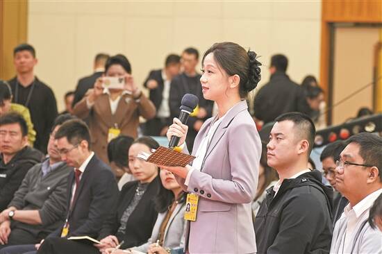 7日,在十四届全国人大四次会议民生主题记者会上,羊城晚报记者向教育部部长怀进鹏提问 羊城晚报记者 曾育文 摄 |