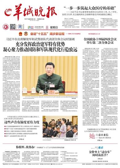 中共广东省委主管、主办 羊城晚报社出版 1957年10月1日创刊 2026年3月8日 星期日 丙午年正月二十 25℃ 13℃ 责编/袁婧 美编/刘