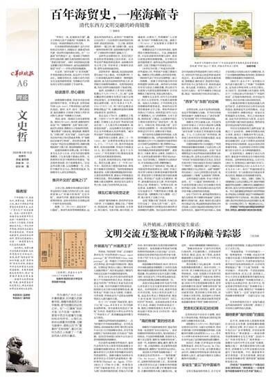 □任文岭 作为清代广州介入对外事务最深、时间最久的佛教寺院,海幢寺曾是西方来华客商、使节抵穗后的必到之所。在“一口通商”的岁月里,它不仅是一座佛寺,更是中西文化碰撞与交融的标志性符号。让我们从那些远渡重洋的图像、古籍与旋律中,提炼出四“件”重要的“文明信物”,看它们如何为西方人构建了一个真实而迷人的东方童话。 外销画与“广州画界王子” 外销画,当时俗称“洋画”,后来被学者命名为“中国外销画(Chinese export paintings)”或“中国贸易画(China trade paintings)”,是一种融合了中西审美的新式艺术形态,其中包括中国较早的一批油画。它曾经是“欧美人士借以了解中国风土面貌的媒介”,现在则是我们了解清代中西文化交流不可或缺的重要史料。 作为18至20世纪初中西贸易背景下产生的独特外销艺术品,外销画主要是当时的广州等地艺术家为迎合西方人兴趣,采用中西融合的绘画技法,按照西方买主和市场需要制作而成,题材多是广州港口风光与船舶、肖像画、市井风情、外销商品生产过程及动植物等西方人感兴趣的主题。 在十三行“中国街”的画室里,诞生了以“呱”(Qua,源自商号名)为号的职业画师群体。其中最著名的莫过于“林呱”关乔昌,他被英国人蒂凡尼评价为“广州画界王子”,称其捕捉逼真的能力无与伦比。 海幢寺是外销画的重要题材之一,在当时被不少中西画家描绘过。巴尔扎克的朋友、法国画家奥古斯特·博尔热1838年8月至10月到海幢寺多次,用写生笔法描绘了寺内多处场景,后在西方广为传播。法国《世界画报》1858年2月20日曾刊登顺呱绘的海幢寺。 在目前所见海幢寺外销画中,最具代表性的当为大英图书馆和海幢寺分别收藏的海幢寺组画,其中大英图书馆藏本曾刊于《大英图书馆特藏中国清代外销画精华》。海幢寺藏本为西班牙皇家菲律宾公司首席代表曼努埃尔·德·阿格特(Manuel de Agote,1755-1803)于1796年订制。阿格特自1787年起驻留中国,并于1792年参与澳门地图样稿的绘制,样稿五年后被乔治·斯坦顿复制在为英国使团制作的地图册中。该册海幢寺外销画当时被阿格特带回欧洲之后即引起广泛关注,如旅居毛里求斯的法国自然学家马塞,在他1797年8月22日的日记中就曾提到该册。 该册海幢寺外销画共48开,其中44开用水粉或描金详细描绘了18世纪末海幢寺各殿堂或殿堂内所供奉佛、菩萨及神祇造像,并以西班牙文及中文进行注解。同时,扉页还交代了所有者及画册信息,另外还附有折叠式海幢寺测绘图一开。 该册可谓是海幢寺作为清代中期以来东西方文化交流重要场所的历史见证。从材料选择上来说,此册并非选用中国宣纸,为突出其色彩及精工之笔,而是采用英国上等纸张作画,纸张下亦可见到“MANTURKEY MILL KENT”的水印。从绘画技法和艺术水平上来说,其融汇中西绘画技法于一体,描绘之精细程度和艺术水平之高,也远超于其他18至19世纪的一系列外销画作品。 “海的帐幔”里的经坊本 海幢寺不仅提供视觉美学,更是当时华南一处重要的“知识出版中心”。该寺经籍刻印的传统历史悠久,很早就创办了印经坊,不仅刻印佛教典籍,也刻印文人雅士诗文集等,被称为“海幢寺经坊本”。有清一代,其集刻印、藏版、藏书、赠书、售书于一体,出版的佛经、诗文集等各类图书数量众多,规模在广东寺院中无出其右。 美国商人亨特曾为海幢寺取了一个充满童话色彩的译名——“海的帐幔”(The Sea Screen)。在这层“帐幔”之后,是精妙的传统印刷工艺。英国传教士格雷曾详尽记录了海幢寺的印刷细节:工人们手持以椰子纤维制作的刷具,在雕刻精细的木板上蘸墨扫压。就这样,一册册书籍被源源不断刷印而出。 “海幢寺经坊本”于清代中后期风行海内外,不仅被传教士、学者陆续带至英国、德国、法国、荷兰等地,还多次被越南僧人引进重刊,充当了中外文化交流的重要媒介。 英国传教士马礼逊是第一位来华的基督教新教传教士,他在中国的二十余年里,常于海幢寺驻足以及“买书”并带回祖国。目前,仅伦敦大学亚非学院图书馆“马礼逊藏书”中就有80多种注明为“海幢寺藏版”。德国汉学家诺依曼1830年代专程到海幢寺购书,其带回的典籍中有28部“海幢寺经坊本”现藏于巴伐利亚州立图书馆。此外,法国国家图书馆、英国剑桥大学图书馆、荷兰莱顿大学图书馆、美国加州大学洛杉矶分校图书馆、澳大利亚国家图书馆等也收藏有数量不等的“海幢寺经坊本”。 梵音和《茉莉花》的初啼 文明的对话不仅存在于器物,更存在于律动的共振,梵呗版本《茉莉花》的西传与海幢寺也有关系。 清乾隆五十八年(1793),英国马戛尔尼使团出访中国,马戛尔尼的秘书、英国学者约翰·巴罗和德籍翻译希特纳,在海幢寺听到僧人唱诵梵呗(fàn bài,梵呗可以理解为歌颂佛德的曲调),深受打动,在寺中完成了这首歌的曲谱及歌词翻译。 回国后,约翰·巴罗将这次中国旅程整理成书,命名为Travels In China,并在1804年出版,这首歌也被记录在列,海幢寺的梵呗版本《茉莉花》由此被传入西方,成为最早被西方文献记载的中国民歌之一。 安徒生“望见”的中国城市 文明互鉴最奇妙的地方,在于它可以穿透空间的阻隔,在遥远的北欧也开出了文学之花。 “昨夜我望见一个中国的城市……每一座神龛里有一个神像,可是差不多全被挂在庙龛上的花帷