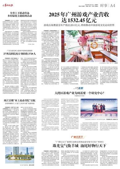 羊城晚报讯 记者陈旭泽报道:3月12日,在2026年广州游戏行业发展趋势与融合创新行业研讨会上,《2025年广州游戏产业发展报告》正式发布。广州市游戏产业全年营收达1532.45亿元,持续稳