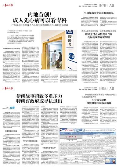文/羊城晚报记者 林清清 通讯员 郝黎 张蓝溪 张诚斌 图/羊城晚报记者 林清清 3月11日,广东省人民医院成人先心病与肺血管科开科。据介绍,这是中国内地首个以成人先心病命名