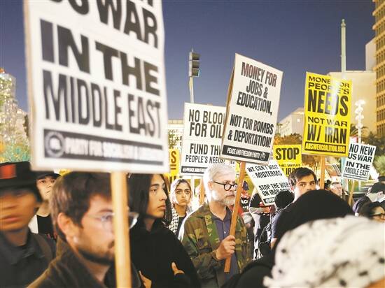 3月,人们在美国洛杉矶参加集会,抗议美国对伊朗发动军事打击 新华社发 |