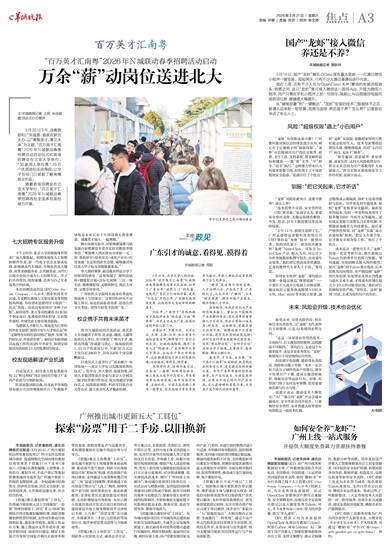 文/羊城晚报记者 王莉 宋诗颖 图/活动主办方提供 3月20日下午,由教育部和广东省委、省政府联合主办,以“粤聚英才、粤见未来”为主题,“百万英才汇南粤”2026年N城联动春季