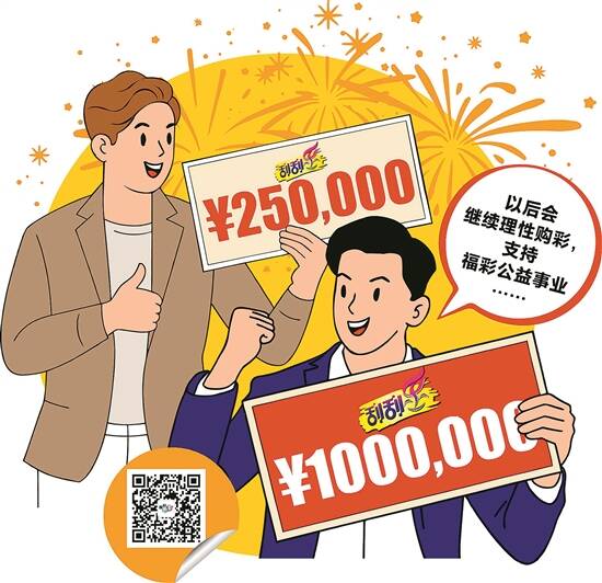 文/羊城晚报记者 黄颖琳 通讯员 袁苏华 插图/采采 近日,佛山市福彩中心迎来两位幸运彩民,他们分别刮出“喜相逢”(面值30元)一等奖100万元和“心想事成”(面值10元)一等奖25万元。两人为公益事业注入温暖力量的同时,也收获了一份春日幸运。 当天上午,“喜相逢”100万元大奖中奖者张先生来到佛山市福利彩票发行中心办理兑奖手续。张先生坦言,平时偶尔购买刮刮乐,纯属当作休闲娱乐,没想过能中百万大奖。刮出大奖后,他拿着彩票反复核对,确认多遍后才敢相信。他表示,这份幸运让他对未来生活有了更多的底气和期待,以后会继续理性购彩,支持福彩公益事业。 当天下午,“心想事成”25万元大奖得主叶先生也前来办理兑奖手续。据叶先生介绍,自己购买这款刮刮乐,抱着“图个好寓意、随手做公益”的心态,没想到刮中一等奖。他表示,将合理规划奖金使用,也会继续支持公益福彩,把快乐和爱心传递下去。 福彩送福,好运连连。每一张刮刮乐都是彩民的爱心汇聚,肩负着公益使命,持续为社会福利和公益事业的发展助力。佛山福彩温馨提醒广大购彩者:请理性购彩、量力而行,随手公益,收获欢乐与幸运。