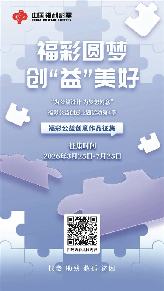 “为公益设计 为梦想创意”福彩公益创意主题活动第四季,乘着春风焕新登场。 养老中心的幸福晨昏、爱心书屋的阅读时光、圆梦大学的学子笑容、福彩公益驿站的温暖灯光……福彩公益金在无数个角落为生活添彩。不论您是专业创作者,还是热心公益的普通人,都可以用海报、视频、摄影等形式,讲述福彩“扶老、助残、救孤、济困” 的初心,展现福彩责任担当,科普福彩知识,定格真实动人的公益瞬间。 征集对象 面向社会公开征集公益创意作品。中国福利彩票从业人员、代销者、公益慈善组织等相关单位从业者,从事设计、创意、视频制作等业务的企事业单位,以及关心、支持福利彩票事业发展的单位和个人,均可以个人或团体(单位)方式参与。 征集类型 1.平面类:JPG格式(海报需附PSD/ AI源文件),A3尺寸(297×420mm),分辨率300dpi,单幅或系列(系列≤3幅),每幅≤10MB。 2.视频类:短视频、Vlog、纪录片、动画等,MP4格式,分辨率1080P,时长15秒—5分钟,横竖屏不限。 3.摄影类:文件格式为JPG,长边不小于3000像素,文件大小不低于2M;风格不限,单幅、组照(组照≤9幅)不限,彩色黑白均可。 作品要求 (一)必须围绕主题“福彩圆梦·创‘益’美好”,按照指定创意方向创作。 (二)所有投稿作品中需包含福彩元素:平面类、视频类作品必须包含中国福利彩票标识;公益方向作品必须包含 “扶老、助残、救孤、济困”“为社会造福,为生活添彩”任意一句;责任方向、科普方向作品必须包含“公益福彩,责任同行”“理性购彩 快乐公益”任意一句;摄影作品必须是福彩公益资助项目相关内容,包括但不限于设备设施、受助者、公益场景等。 (三)内容生动、积极向上,创意应具有创新性和趣味性,能够调动大众对公益的兴趣和好感。 (四)投稿者或团队提供的作品应为其本人或团队独立创作的原创作品,不得存在侵害他人著作权或其他合法权益的情形,已公开出版或发表的作品需加以特别说明。不得一稿多投。 (五)若为AI创作作品,须特别注明“本作品由AI制作生成”。 活动时间 (一)作品征集 3月25日—7月25日 (二)作品初评 7月28日—8月中旬 (三)结果公示 8月底 (文/图 黄颖琳 中福彩)
