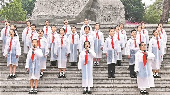 3日,在广州起义烈士陵园“追寻·2026·清明祭英烈”主题活动中,广州越秀区中山三路小学学生代表献词,告慰英烈。