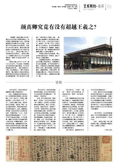 《祭侄文稿》创作于758年,距今已1200余年,可以说是一件难得的至今保存完好的唐代真迹。宋代书法家黄庭坚评价其:“鲁公祭季明文,文章,字法皆能动人。”清代书法家王澍评曰:“鲁公痛其忠义身残,哀思勃发,故萦纡郁怒,和血迸泪,不自意其笔之所至,而顿挫纵横,一泄千里,遂成千古绝调。”元鲜于枢在《书跋》中称:“唐太师鲁公颜真卿书《祭侄季明文稿》,天下第二行书。”此评为历代书家公认。被称为“天下第一行书”的是王羲之的《兰亭序》,但并没有真迹存世。本次展览名为“颜真卿:超越王羲之的名笔”展,颜真卿究竟有没有超越王羲之?应该如何看待?