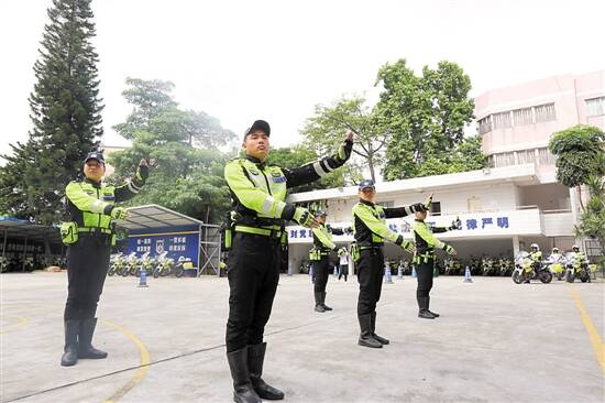 铁骑队员进行警体操和交通手势表演
