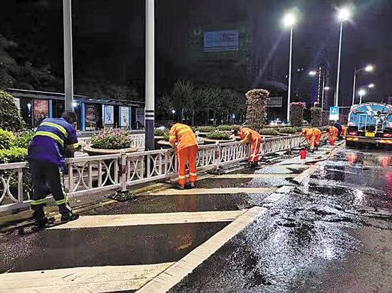 为了不影响市民正常出行,白天环卫养护中心主要进行道路洒水和人行道清洗,而每到午夜时分人们深入梦乡时,城市美容师们却在热火朝天地清洗天桥、隧道、护栏等城市道路设施。据不完全统计,环卫养护中心已累计清洗隧道约10.4万m2、护栏7万多米和天桥36座。此外,还对道路果皮箱、公厕等进行深度清洗,并对部门垃圾中转站进行翻新维护,同时加强汾江河等水域保洁,全方位提升城市市容环境水平。