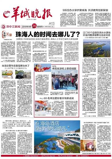 羊城晚报讯 记者钱瑜、通讯员刁晓平摄影报道:9月25日,“珠澳海湾游1”号豪华游轮首航。在首航仪式中,为迎接国庆,庆祝游轮首航,主办方采取了挂“满旗”的传统方式。今年是湾仔旅游码头开通澳门环岛游37周年,为了向首航仪式的嘉宾致礼,同时纪念37年珠海水上旅游事业的发展征途,主办方采用了37秒的全港鸣笛。船上挂满了缤纷的彩旗,这是游轮为迎接首航和国庆而悬挂的国旗和彩旗。彩旗之中,有一道特别艳丽的旗帜引人注目,即为传说中的“满旗”,是传统航海中最高的礼仪。