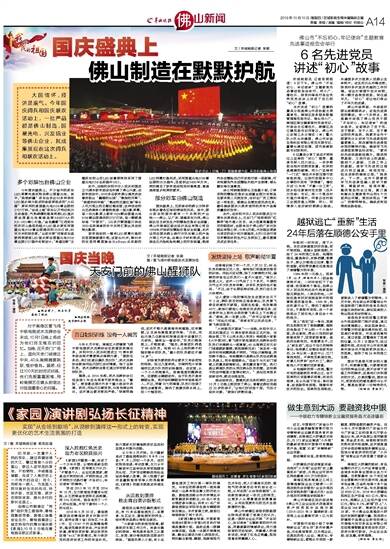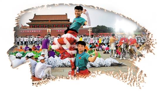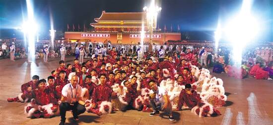 对于南海区黄飞鸿中联电缆武术龙狮协会来说,10月1日晚上将成为他们终生难忘的回忆。当晚,在天安门广场上,面向天安门城楼正中央,40头南狮腾挪跳跃,惟妙惟肖。据悉,经过100天的封闭式训练,他们克服重重困难,用岭南狮艺在镜头前表达对祖国最衷心的祝福。