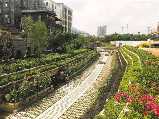 截至目前,该公司已完成上游明渠和下游暗渠清淤作业,确保排洪渠洪断面畅通,对减轻排洪渠黑臭起到一定的作用。此外,在北山排洪渠,则是打造成以生态环保为主,兼具生态观赏性的排水明渠。该排洪渠明渠段将社区公园与北山村居隔断,美人蕉、黄金叶等植物郁郁葱葱。如今,北山排洪渠已完成下游“百米示范段”,上游正热火朝天地施工。目前,北山排洪渠水生态环境趋向转好。全段清淤1542.7米、总清淤量约4694立方米,施工完成生态框铺设及绿化310米,上游截污井9座。总体工程形象进度90%,计划11月底完成暗渠截污和明渠上游截污改造。