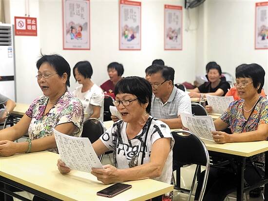 近日,河田社区综合服务中心经常传来一阵阵洪亮又悦耳的歌声,走进一看,原来是20多位老人在唱红歌。只见,现场有一位老师站在前面打着节拍,长者们合着节拍,昂首挺胸地看着歌词大声唱出来,时而激情澎湃,时而充满情感,十分投入,吸引了不少“歌迷”围观和鼓掌叫好。当唱到一些较为拗口的字词时,老师会一字一句指导,大家都学得很认真。