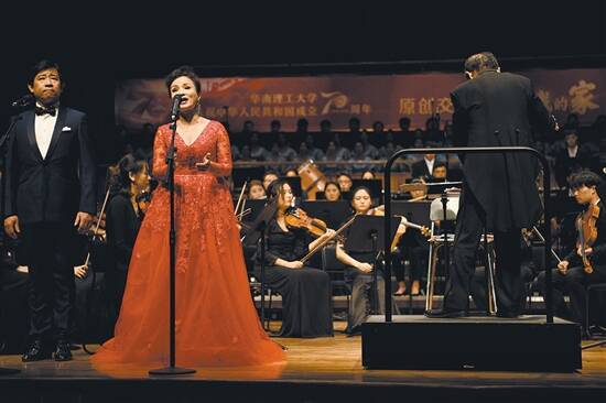 羊城晚报记者 胡广欣 摄影 周巍10月9日晚,由华南理工大学党委宣传部、艺术学院打造的原创交响组歌《我的家·我的国》在星海音乐厅上演,为新中国七十华诞献礼。《我的家·我的国》以“珠江”这一岭南符号为线索,围绕改革开放40周年、新中国成立70周年等重要节点,展现新中国成立以来取得的伟大成就。