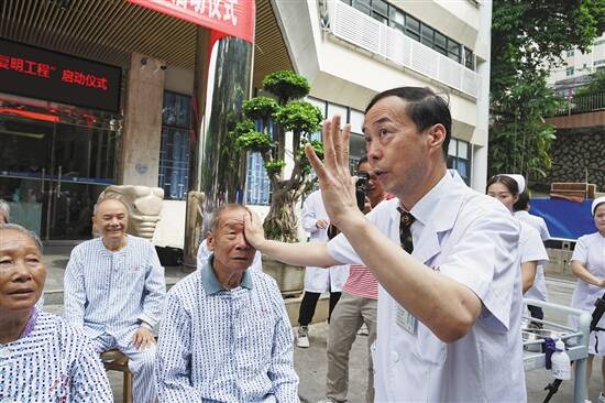 珠海市人民医院眼科中心主任侯光辉现场测试患者视力