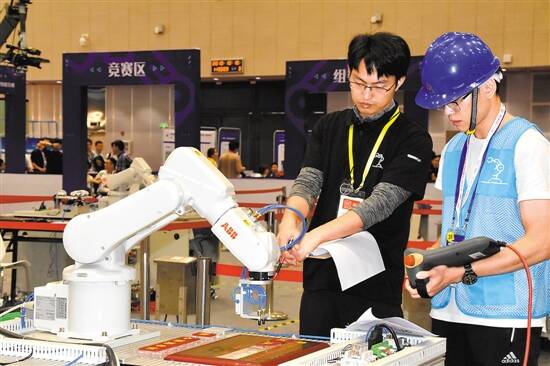 为保证竞赛能高度还原企业生产环境,展现选手最佳实力,大赛组委会根据企业生产实际,采用ABB工业机器人等国际上应用广泛的专业设备,并依据国家机械设备安装职业标准,以严格的操作规范来考核参赛选手。