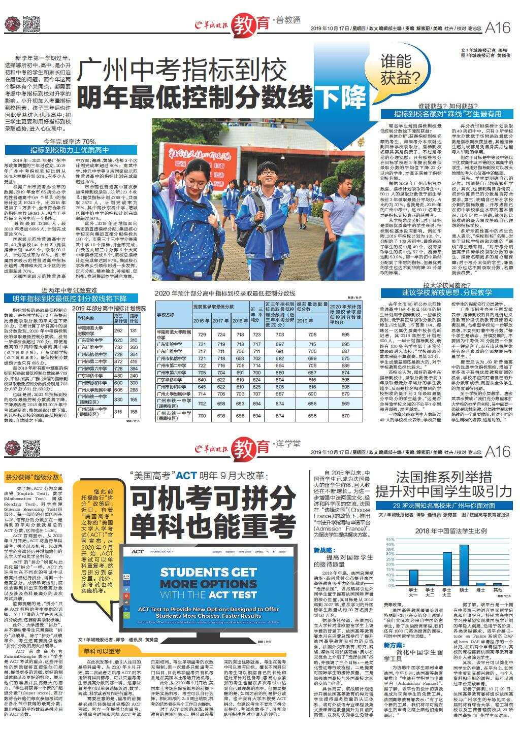 广州中考指标到校 明年最低控制分数线下降谁能 获益?