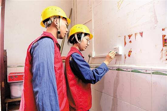 东莞供电局的扶贫志愿者为低保户检查用电设备