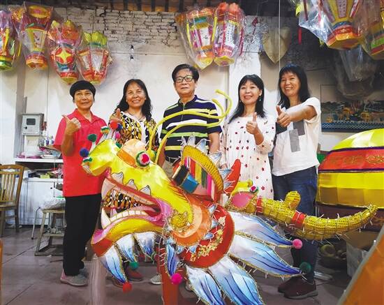 佛山传艺彩灯工作室的五位非遗传承人合影