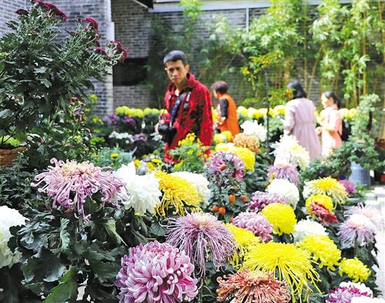 记者到苏氏书塾的展览点走访发现,赏菊的市民、游客众多。整个苏氏书塾的墙内墙外都摆放满了各式菊花。展出的菊花品种繁多,在颜色上也是多种多样,除了常见的黄色、白色、红色外,还有较少见的蓝色。