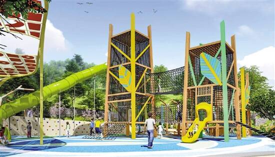 以项目的登山步道建设为例,登山步道将按照南粤古驿道的标准和要求建设,步道采用的做法主要为三合土(平缓段)和石板台阶,与共乐园核心保护区的道路风格、历史风貌保持一致。而社区公园建设选取的设施主要为树屋、滑道、攀爬、植物科普等自然方面的题材,可以适当开展相关儿童的教育科普活动,并未选取一些造型浮夸过分“西化”的设施题材。“设施均不涉及声、光、电等设施,属于静态的活动设施,该项目为非营利性质,建成后将对市民免费开放。”