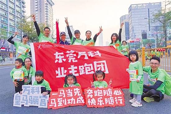 作为连续三届莞马的冠名商,东莞万科的员工和业主也积极参与其中。在比赛现场,笔者就看见东莞万科员工跑团手持“与东莞同奔跑”大旗精彩亮相。据了解,万科业主跑团、东莞万科跑团、龙湾精英跑团共上百人组成了方阵,奔跑在今天的赛场上。