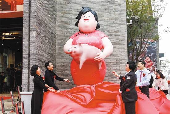1月2日,猪肉婆私房菜顺德华侨城欢乐海岸店分店门口,一座憨态可掬的“顺德猪肉婆”雕塑揭开面纱,吸引了不少市民游客的目光。