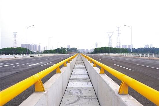 记者看到,大桥上的机动车道和非机动车道之间,一路都有铁护栏分隔开。对此,中建四局惠新大道跨东江大桥工区长杨欢解释说:“这样既能防止机动车突然发生意外冲向非机动车道和人行道,也能规范非机动车的行驶路线,将更安全。”